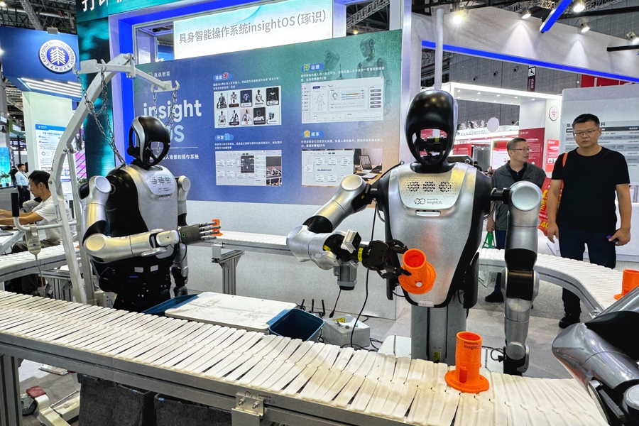 人形机器人在传送带旁分拣产品。赖鑫琳摄