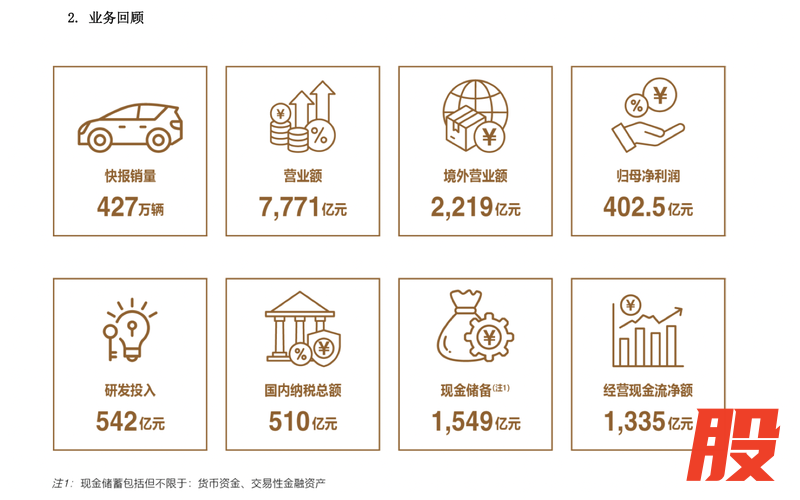 “2024年是我们继续高速发展的一年。2025年持续推进多品牌矩阵建设,加速业务出海进程;手机部件及组装业务方面将进一步提升垂直整合优势亚金配资,深化大客户战略合作。”比亚迪董事长兼总裁王传福在年报中表示。